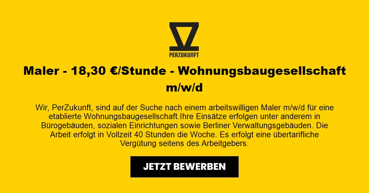 Wir, PerZukunft, sind auf der Suche nach einem arbeitswilligen Maler m/w/d für eine etablierte Wohnungsbaugesellschaft. Ihre Einsätze erfolgen unter anderem in Bürogebäuden, sozialen Einrichtungen sowie Berliner Verwaltungsgebäuden. Die Arbeit erfolgt in Vollzeit 40 Stunden die Woche. Es erfolgt eine übertarifliche Vergütung seitens des Arbeitgebers. Wir freuen uns bereits auf die Zusammenarbeit!