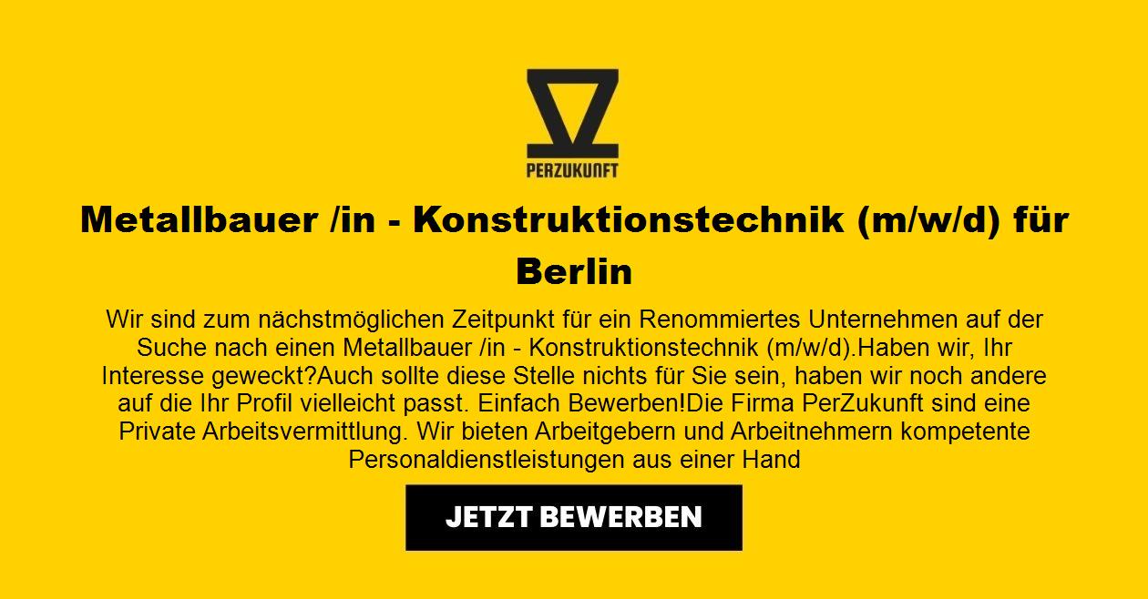 Wir sind zum nächstmöglichen Zeitpunkt für ein renommiertes Unternehmen auf der Suche nach einem Metallbauer – Konstruktionstechnik (m/w/d).