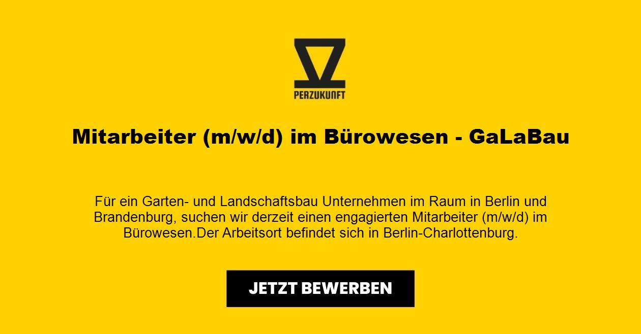 Für [ein] Garten- und Landschaftsbau Unternehmen im Raum in Berlin und Brandenburg, suchen wir derzeit einen engagierten Mitarbeiter (m/w/d) im Bürowesen. Der Arbeitsort befindet sich in Berlin-Charlottenburg.