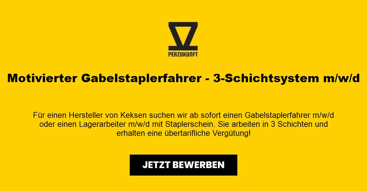 Für (einen) Hersteller von Keksen suchen wir ab sofort einen Gabelstaplerfahrer m/w/d oder einen Lagerarbeiter m/w/d mit Staplerschein. Sie arbeiten in 3 Schichten und erhalten eine übertarifliche Vergütung!