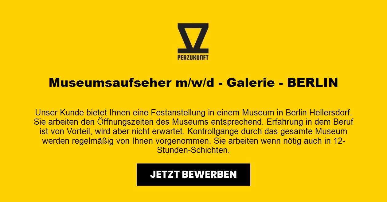 Unser Kunde bietet Ihnen eine Festanstellung in einem Museum in Berlin Hellersdorf. Sie arbeiten den Öffnungszeiten des Museums entsprechend. Erfahrung in dem Beruf ist von Vorteil, wird aber nicht erwartet. Kontrollgänge durch das gesamte Museum werden regelmäßig von Ihnen vorgenommen. Sie arbeiten wenn nötig auch in 12-Stunden-Schichten.