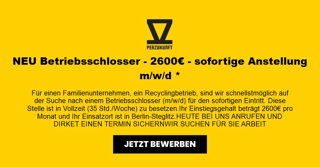 Für einen Familienunternehmen, ein Recyclingbetrieb, sind wir schnellstmöglich auf der Suche nach einem Betriebsschlosser (m/w/d) für den sofortigen Eintritt. Diese Stelle ist in Vollzeit (35 Std./Woche) zu besetzen. Ihr Einstiegsgehalt beträgt 2967,48€ pro Monat und Ihr Einsatzort ist in Berlin-Steglitz. HEUTE BEI UNS ANRUFEN UND DIRKET EINEN TERMIN SICHERN WIR SUCHEN FÜR SIE ARBEIT