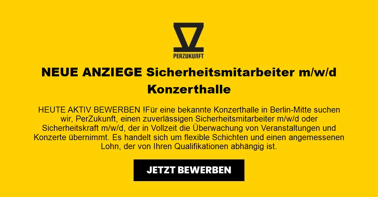 Für eine Konzerthalle in Berlin-Mitte suchen wir, PerZukunft, einen zuverlässigen Sicherheitsmitarbeiter m/w/d oder Sicherheitskraft m/w/d, der in Vollzeit die Überwachung von Veranstaltungen und Konzerte übernimmt. Es handelt sich um flexible Schichten und einen angemessenen Lohn, der von Ihren Qualifikationen abhängig ist.