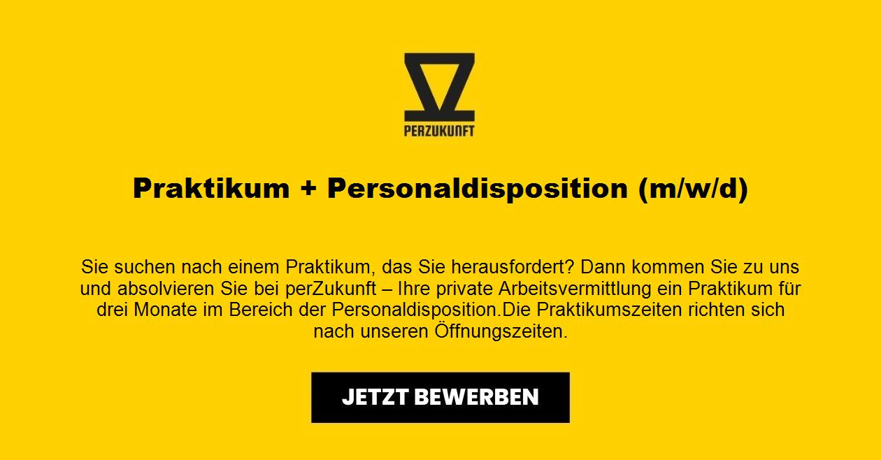 Sie suchen nach einem Praktikum, das Sie herausfordert? Dann kommen Sie zu uns und absolvieren Sie bei perZukunft – Ihre private Arbeitsvermittlung ein Praktikum für drei Monate im Bereich der Personaldisposition. Die Praktikumszeiten richten sich nach unseren Öffnungszeiten.