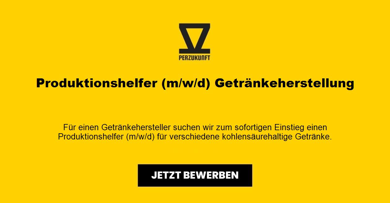 Für einen Getränkehersteller suchen wir zum sofortigen Einstieg einen Produktionshelfer (m/w/d). Für verschiedene kohlensäurehaltige Getränke.