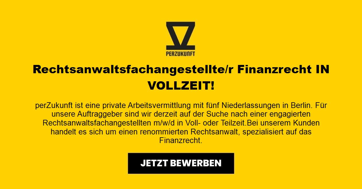 PerZukunft ist eine private Arbeitsvermittlung mit fünf Niederlassungen in Berlin. Für unsere Auftraggeber sind wir derzeit auf der Suche nach einer engagierten Rechtsanwaltsfachangestellten m/w/d in Voll- oder Teilzeit. Bei unserem Kunden handelt es sich um einen renommierten Rechtsanwalt, spezialisiert auf das Finanzrecht.