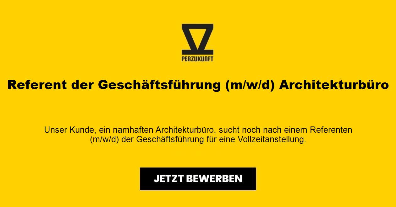 Unser Kunde, ein namhaftes Architekturbüro, sucht noch nach einem Referenten (m/w/d) der Geschäftsführung für eine Vollzeitanstellung.