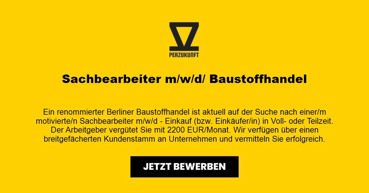 Ein renommierter Berliner Baustoffhandel ist aktuell auf der Suche nach einer/m motivierte/n Sachbearbeiter m/w/d - Einkauf (bzw. Einkäufer/in) in Voll- oder Teilzeit. Wir verfügen über einen breitgefächerten Kundenstamm an Unternehmen und vermitteln Sie erfolgreich.