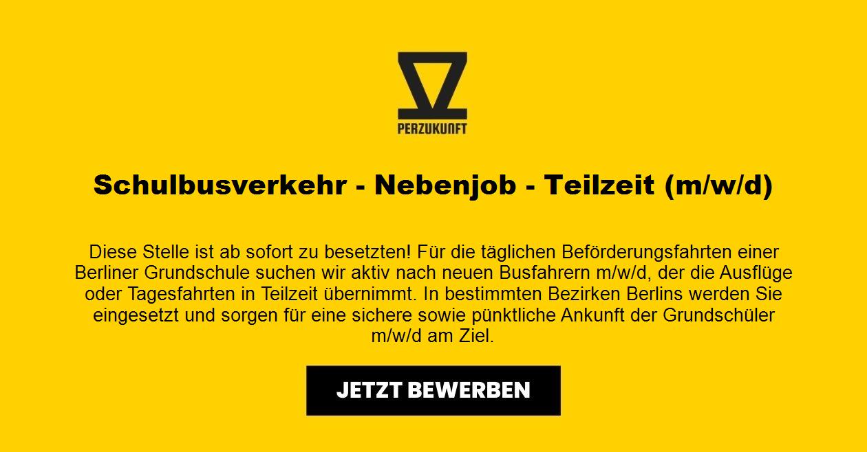 Diese Stelle ist ab sofort zu besetzten! Für die täglichen Beförderungsfahrten einer Berliner Grundschule suchen wir aktiv nach neuen Busfahrern m/w/d, der die Ausflüge oder Tagesfahrten in Teilzeit übernimmt. In bestimmten Bezirken Berlins werden Sie eingesetzt und sorgen für eine sichere sowie pünktliche Ankunft der Grundschüler m/w/d am Ziel.