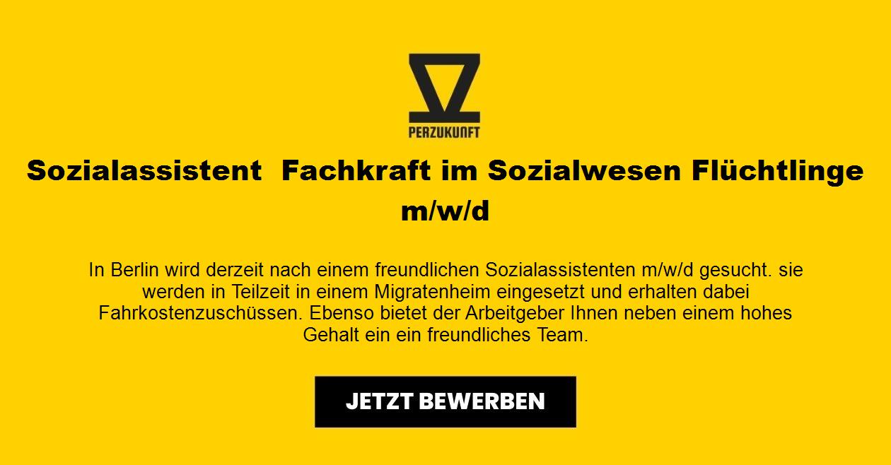 In Berlin wird derzeit nach einem freundlichen Sozialassistenten m/w/d gesucht. sie werden in Teilzeit in einem Migratenheim eingesetzt und erhalten dabei Fahrkostenzuschüssen. Ebenso bietet der Arbeitgeber Ihnen neben einem hohes Gehalt ein ein freundliches Team. Wir freuen uns auf Sie!