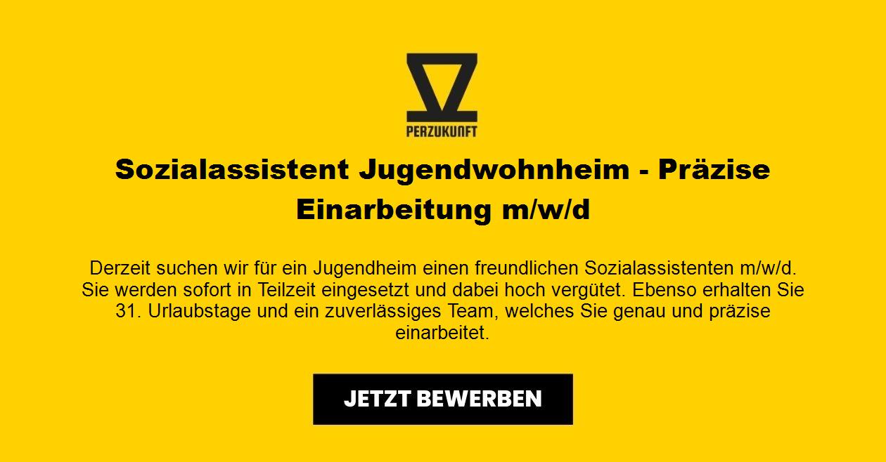 Derzeit suchen wir für ein Jugendheim einen freundlichen Sozialassistenten m/w/d. Sie werden sofort in Teilzeit eingesetzt und dabei hoch vergütet. Ebenso erhalten Sie 31. Urlaubstage und ein zuverlässiges Team, welches Sie genau und präzise einarbeitet.