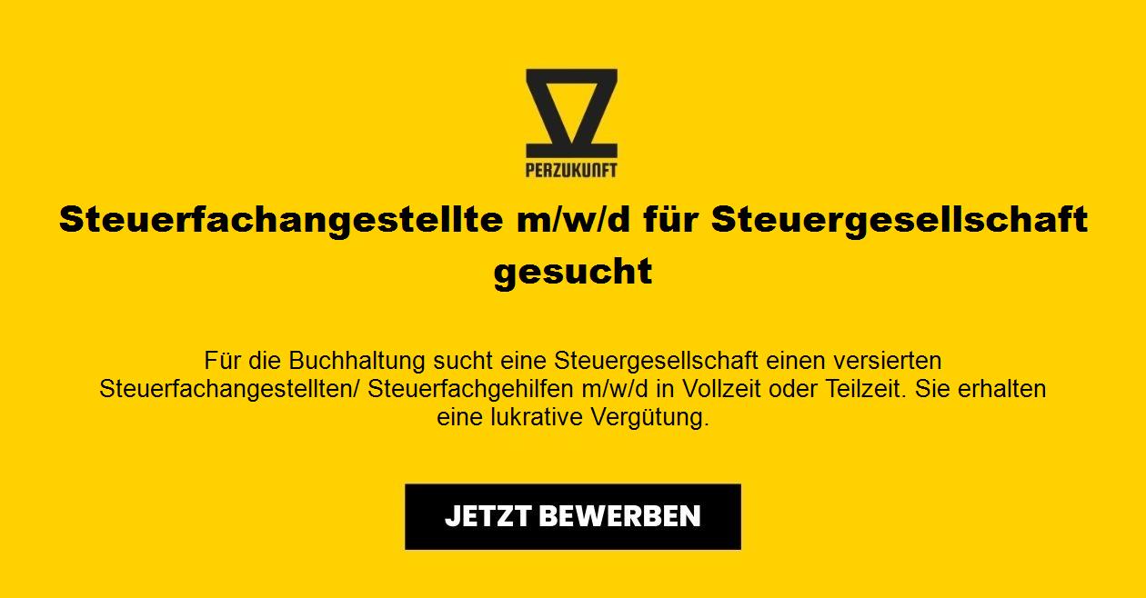Für die Buchhaltung sucht eine Steuergesellschaft einen versierten Steuerfachangestellten/ Steuerfachgehilfen m/w/d in Vollzeit oder Teilzeit. Sie erhalten eine lukrative Vergütung.