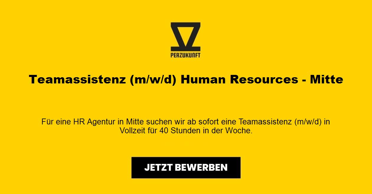 Für eine HR Agentur in Mitte suchen wir ab sofort eine Teamassistenz (m/w/d) in Vollzeit für 40 Stunden in der Woche.