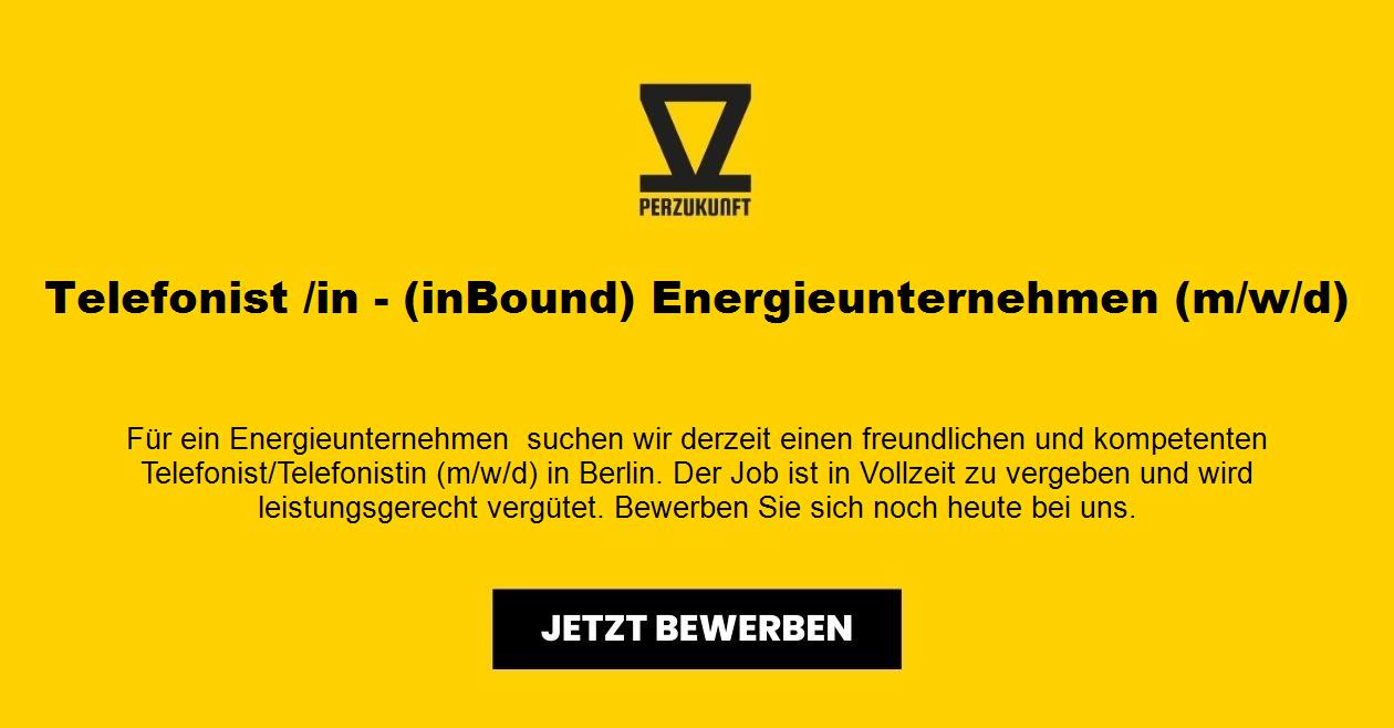 Für ein Energieunternehmen suchen wir derzeit einen freundlichen und kompetenten Telefonist/Telefonistin (m/w/d) in Berlin. Der Job ist in Vollzeit zu vergeben und wird leistungsgerecht vergütet. Bewerben Sie sich noch heute bei uns.