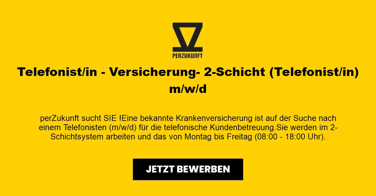 perZukunft sucht SIE ! Eine bekannte Krankenversicherung ist auf der Suche nach einem Telefonisten (m/w/d) für die telefonische Kundenbetreuung. Sie werden im 2-Schichtsystem arbeiten und das von Montag bis Freitag (08:00 - 18:00 Uhr).