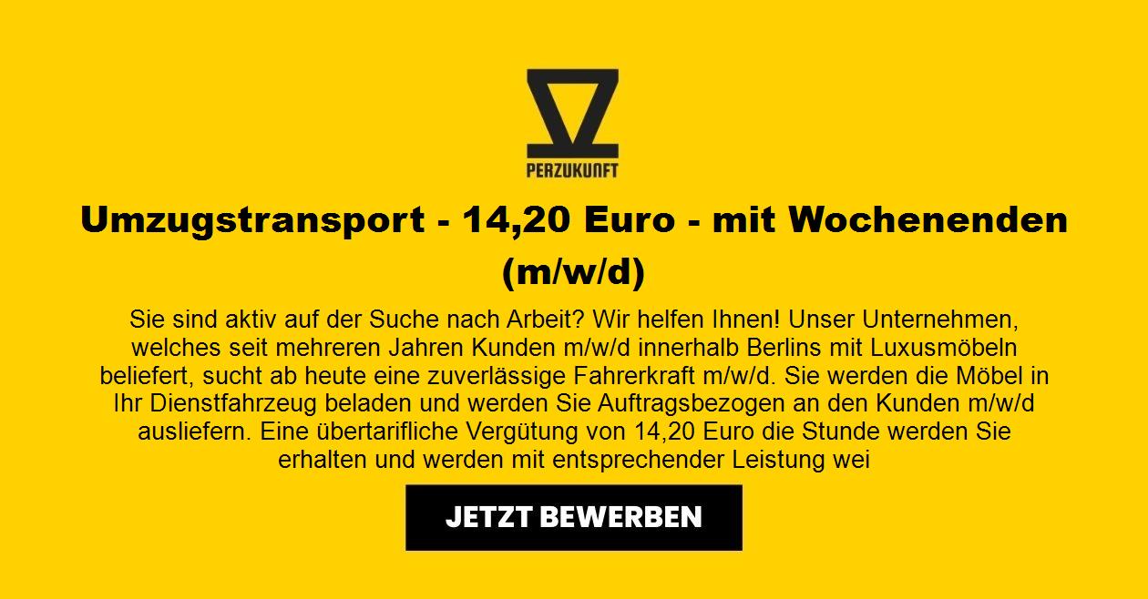 Sie sind aktiv auf der Suche nach Arbeit? Wir helfen Ihnen! Unser Unternehmen, welches seit mehreren Jahren Kunden m/w/d innerhalb Berlins mit Luxusmöbeln beliefert, sucht ab heute eine zuverlässige Fahrerkraft m/w/d. Sie werden die Möbel in Ihr Dienstfahrzeug beladen und werden Sie Auftragsbezogen an den Kunden m/w/d ausliefern. Eine übertarifliche Vergütung von 17,32 Euro die Stunde werden Sie erhalten und werden mit entsprechender Leistung weitere Aufstiegschancen erhalten.