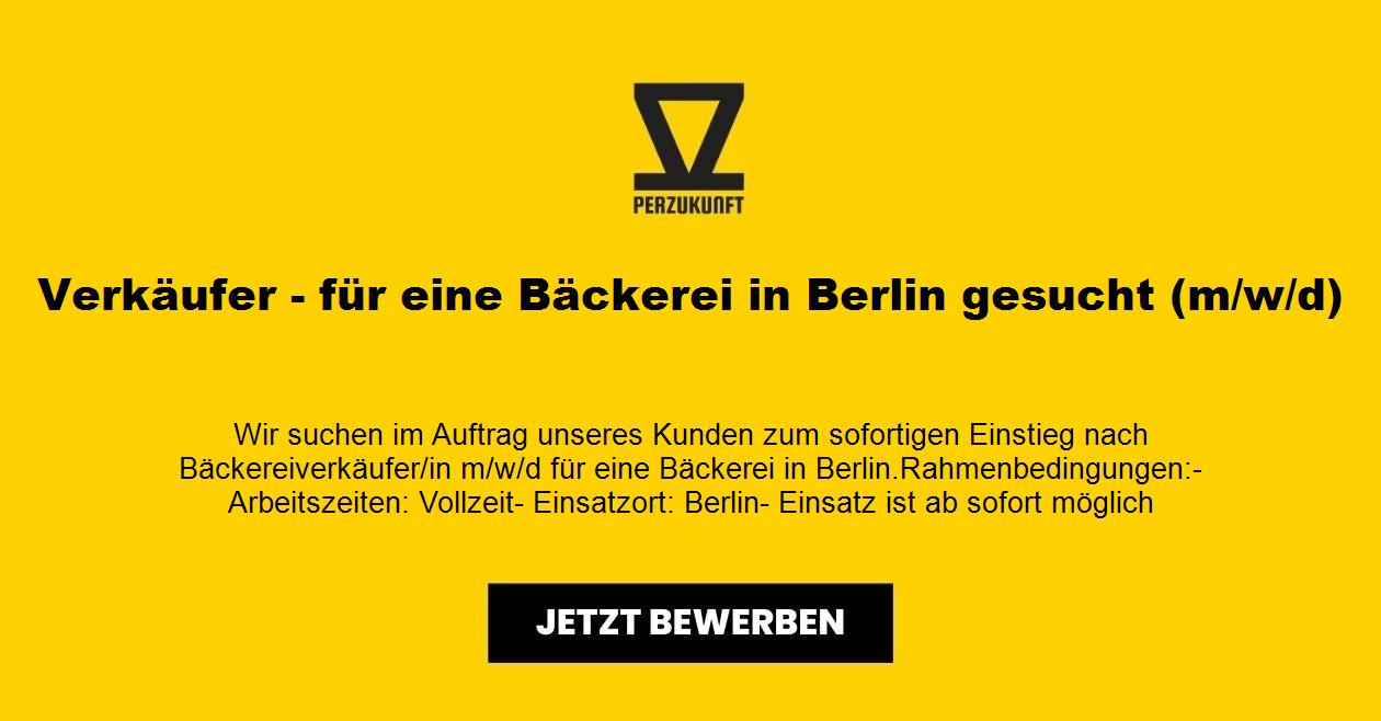 Wir suchen im Auftrag unseres Kunden zum sofortigen Einstieg nach Bäckereiverkäufer/in m/w/d für eine Bäckerei in Berlin. Rahmenbedingungen: - Arbeitszeiten: Vollzeit - Einsatzort: Berlin - Einsatz ist ab sofort möglich Ihr neuer Arbeitgeber freut sich bereits auf Sie und Ihre Unterlagen!