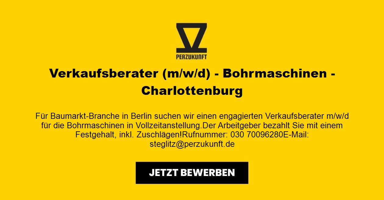 Für Baumarkt-Branche in Berlin suchen wir einen engagierten Verkaufsberater m/w/d für die Bohrmaschinen in Vollzeitanstellung. Der Arbeitgeber bezahlt Sie mit einem Festgehalt, inkl. Zuschlägen!