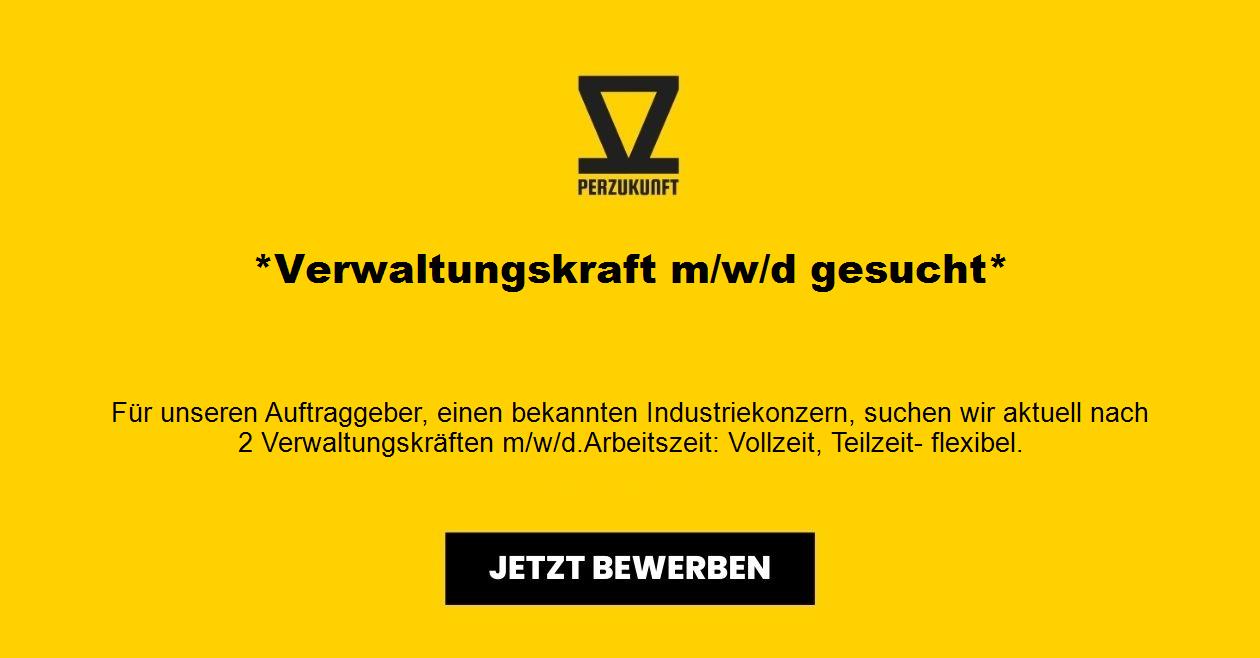 Für unseren Auftraggeber, einen bekannten Industriekonzern, suchen wir aktuell nach 2 Verwaltungskräften m/w/d. Arbeitszeit: Vollzeit, Teilzeit- flexibel.