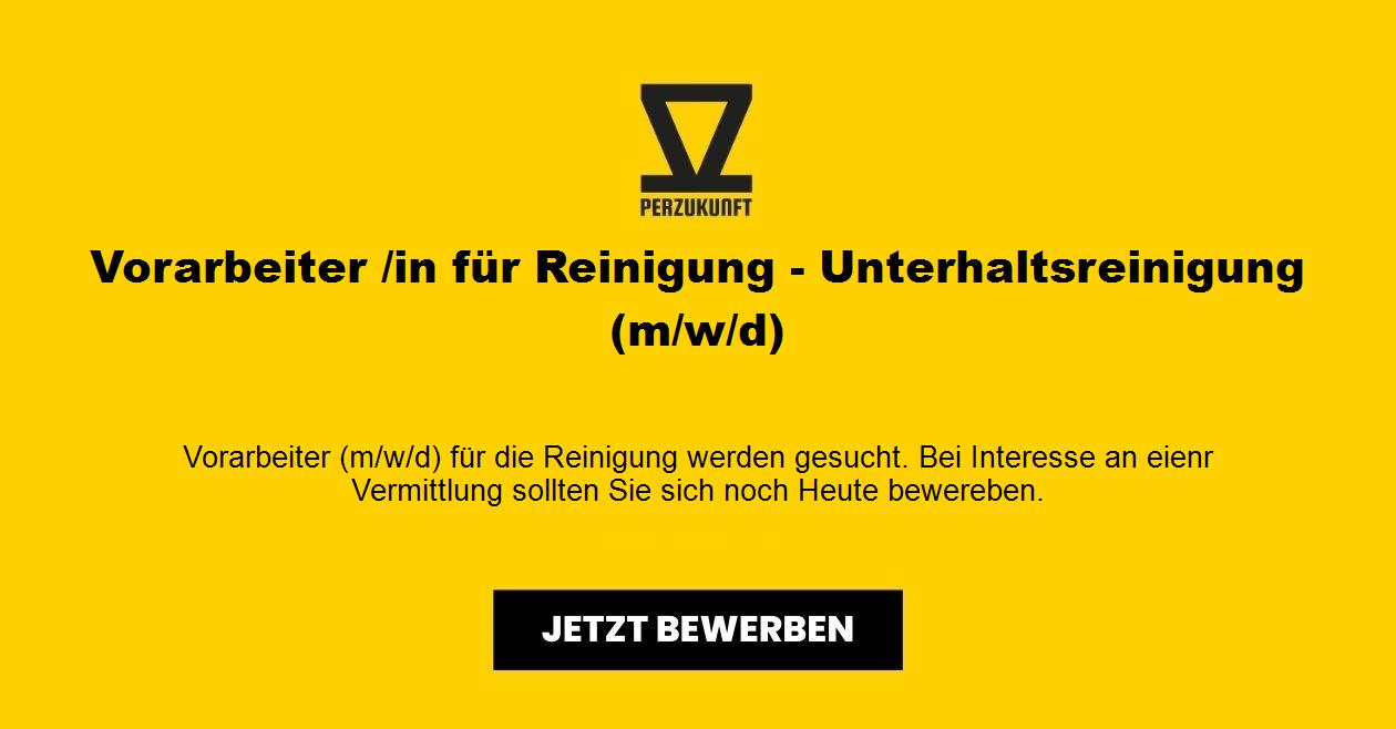 Vorarbeiter (m/w/d) für die Reinigung werden gesucht. Bei Interesse an eienr Vermittlung sollten Sie sich noch Heute bewereben.