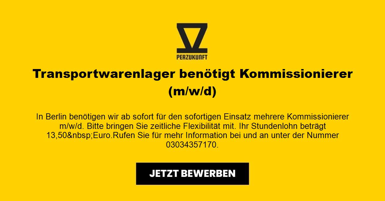 In Berlin benötigen wir ab sofort für den sofortigen Einsatz mehrere Kommissionierer m/w/d. Bitte bringen Sie zeitliche Flexibilität mit. Ihr Stundenlohn beträgt 15,41 Euro.